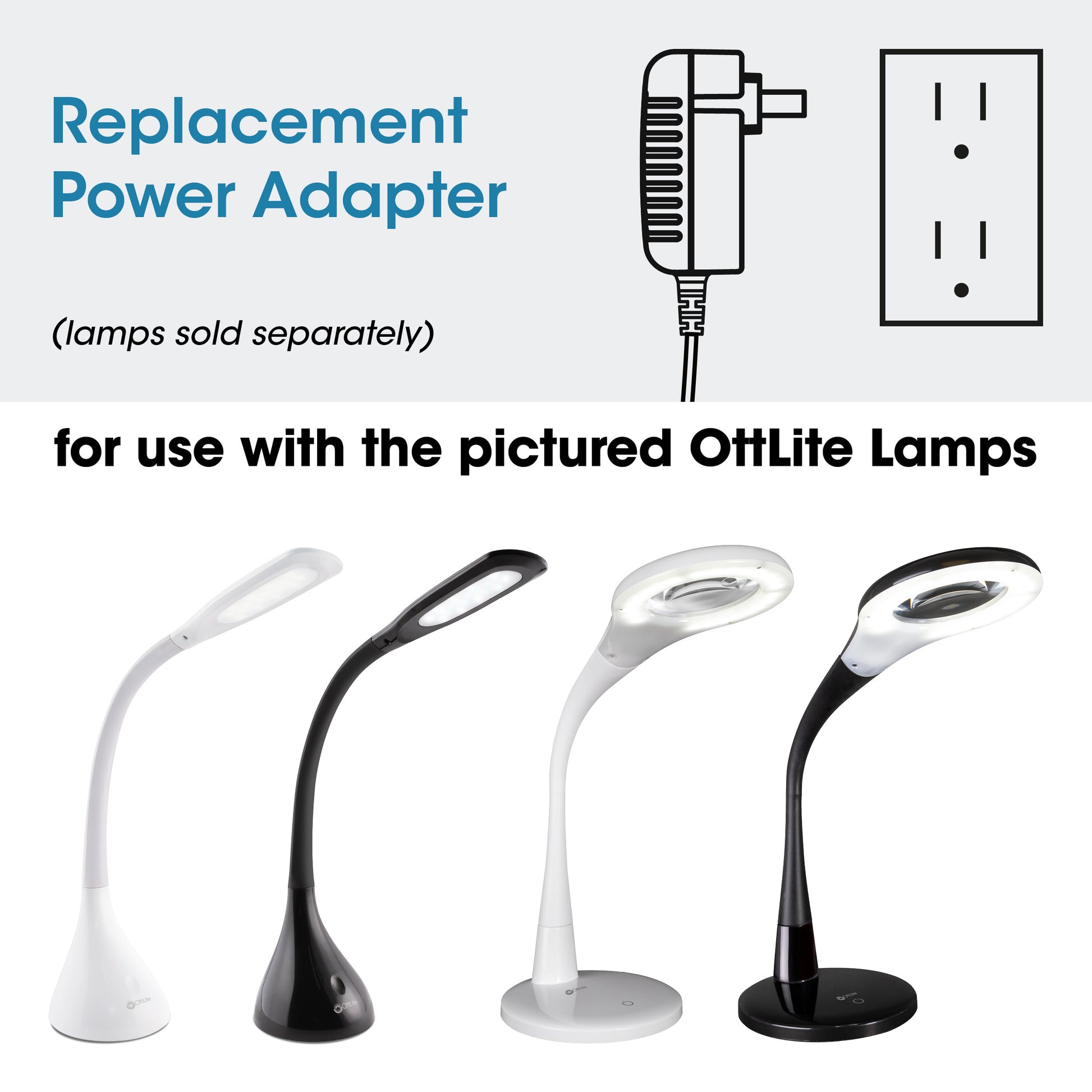 Adapter for OttLite Creative Curves and Prevention by OttLite LED Flexible Magnifier Desk Lamp