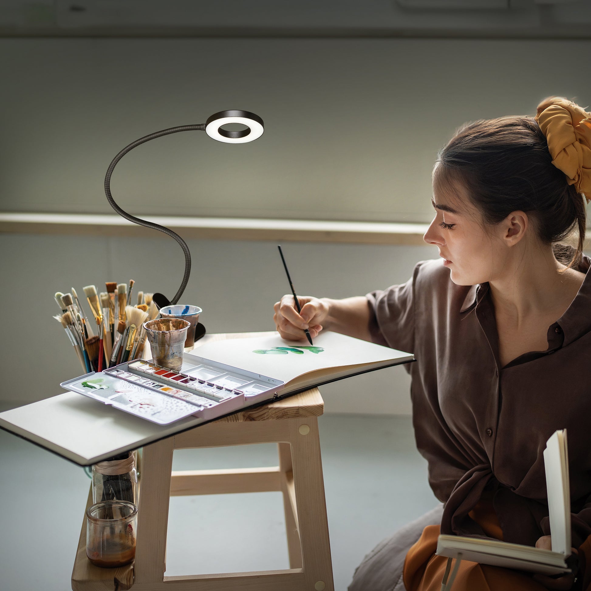 Great as a desk lamp for reading, computer work and projects, this ring light features ClearSun LED technology to reduce eyestrain and glare. And, with three dimmable color temperatures (warm light, bright white and ClearSun® natural daylight), you can easily create the lighting effect you want. To operate, simply plug into a standard USB port on your computer or adaptor (adaptor not included).