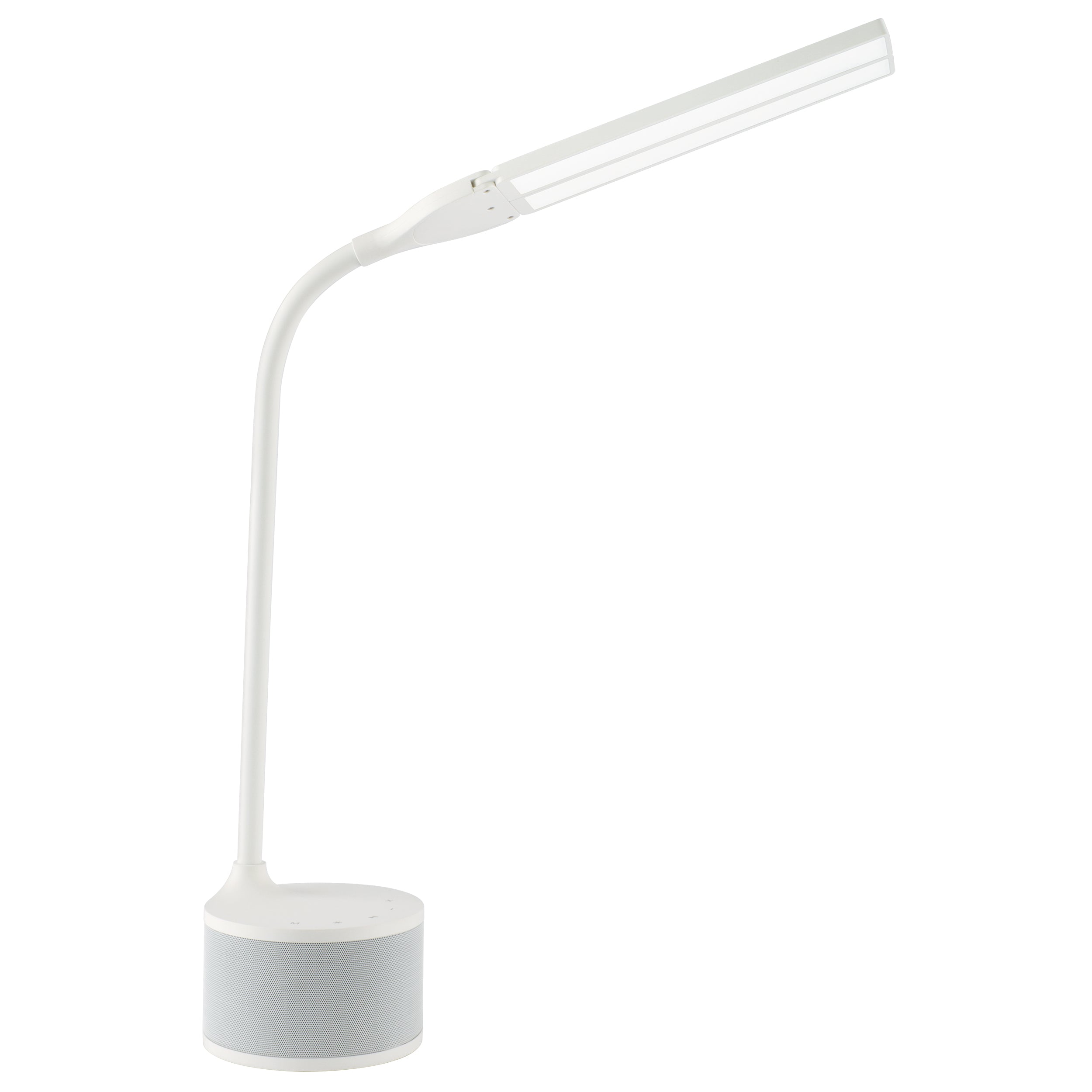 Stream music wirelessly while getting the benefit of natural daylight illumination with the Dual Shade LED Lamp with Bluetooth Speaker & USB. With a touch-sensitive dimmer, 3 color modes (warm white, bright white and natural daylight), a flexible neck and two adjustable shades, you’ll be able to direct the right amount of light just where you need it.