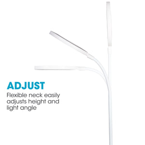 Take great lighting with you all over your space with the OttLite Rechargeable LED Ring Desk Lamp. Perfect for video calls, selfies, staging photography, crafting, reading and more, this portable ring light provides 360 degrees of dimmable illumination. The three color temperatures (warm light, bright white and OttLite’s exclusive ClearSun LED natural daylight) help you easily create the lighting effect you want. The long 13.75-inch flexible neck holds position and easily adjusts. To charge and/or operate, simply plug into a standard USB port on your computer or adaptor (adaptor not included).