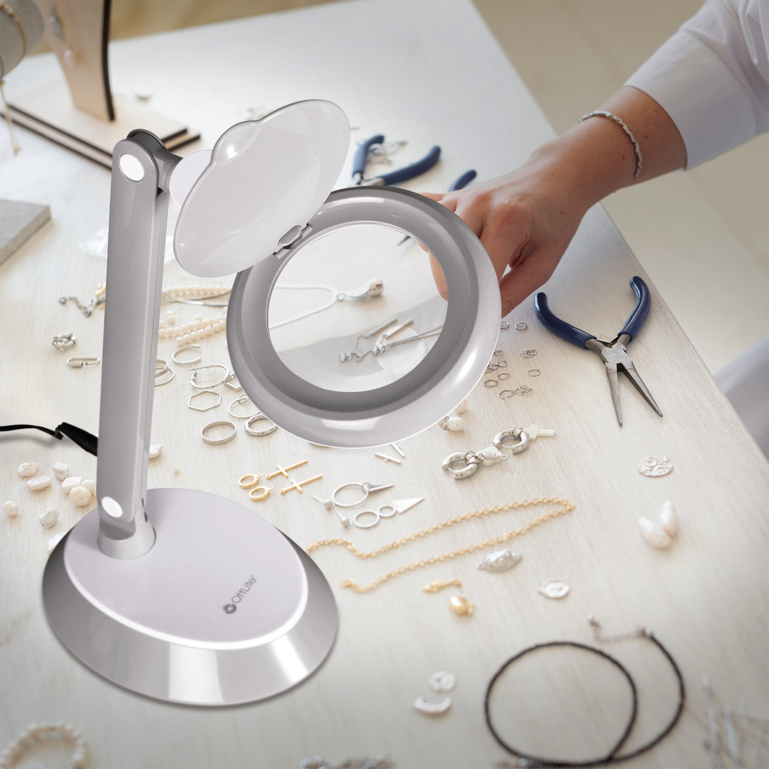 The 3-inch, 1.75x optical-grade magnifier helps you see intricate details with ease. There's a flip cover on the magnifier to protect the lens when not in use and the lamp easily folds for compact storage.With OttLite you can see details clearly and reduce glare.
