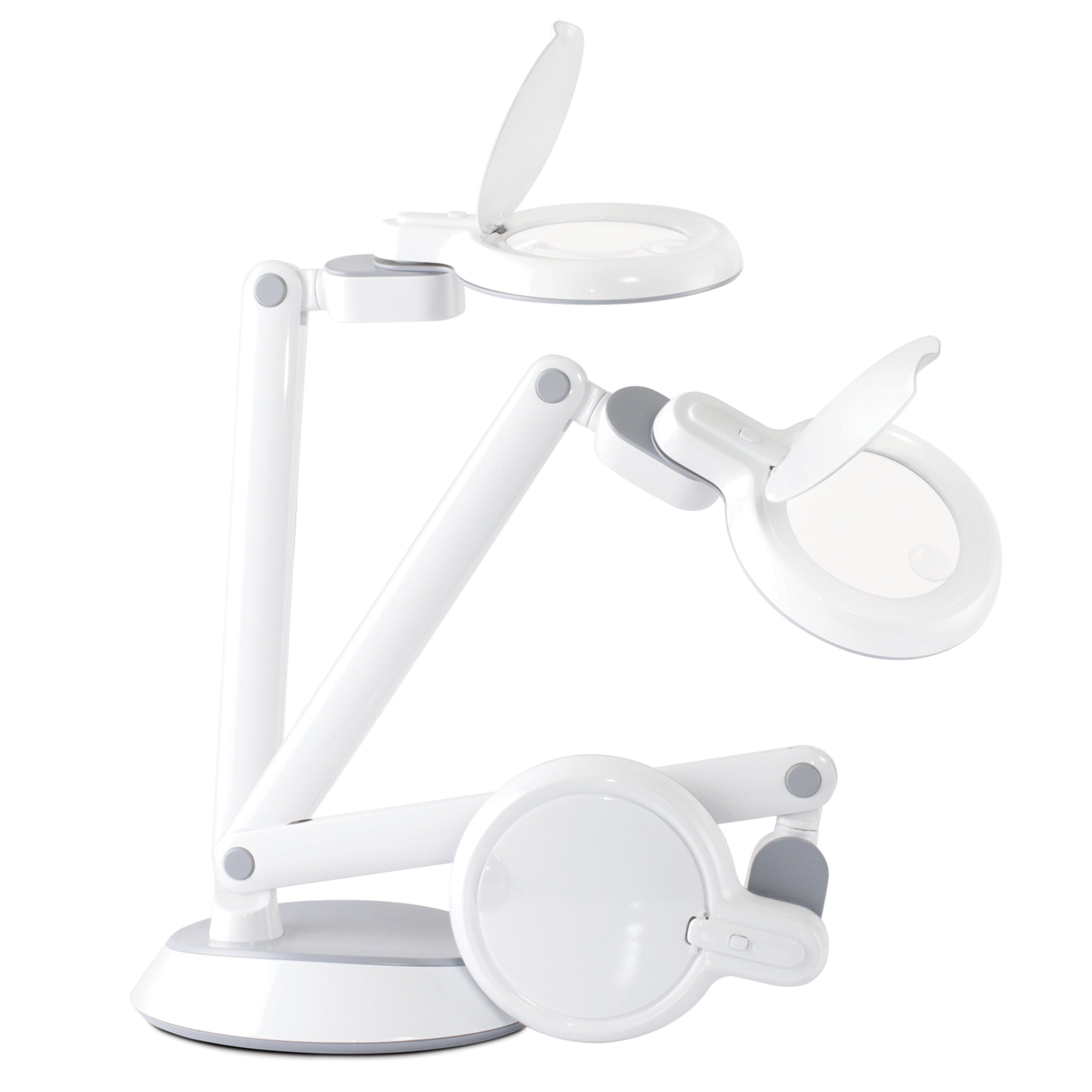 The Space-Saving LED Magnifier Desk Lamp is a lamp and magnifier all in one. With an articulating arm and pivoting head with 4 points of adjustment, you'll be able to position the ClearSun LED illumination anywhere you need.